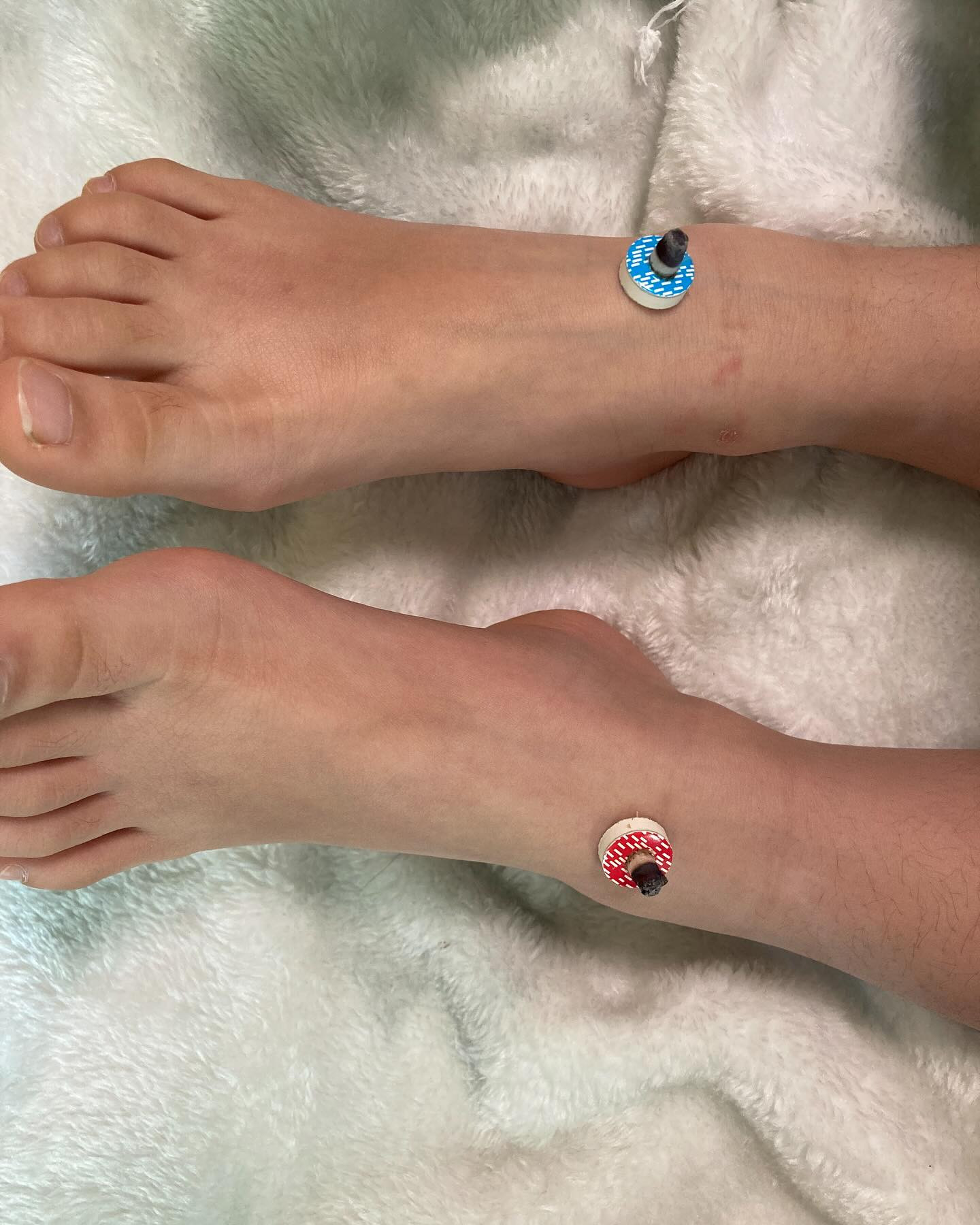モグサの量が少なく約45度前後という熱さの特徴のため、顔にすえることが可能です。全身の巡りを促進するために手足にもお灸をすえます。
